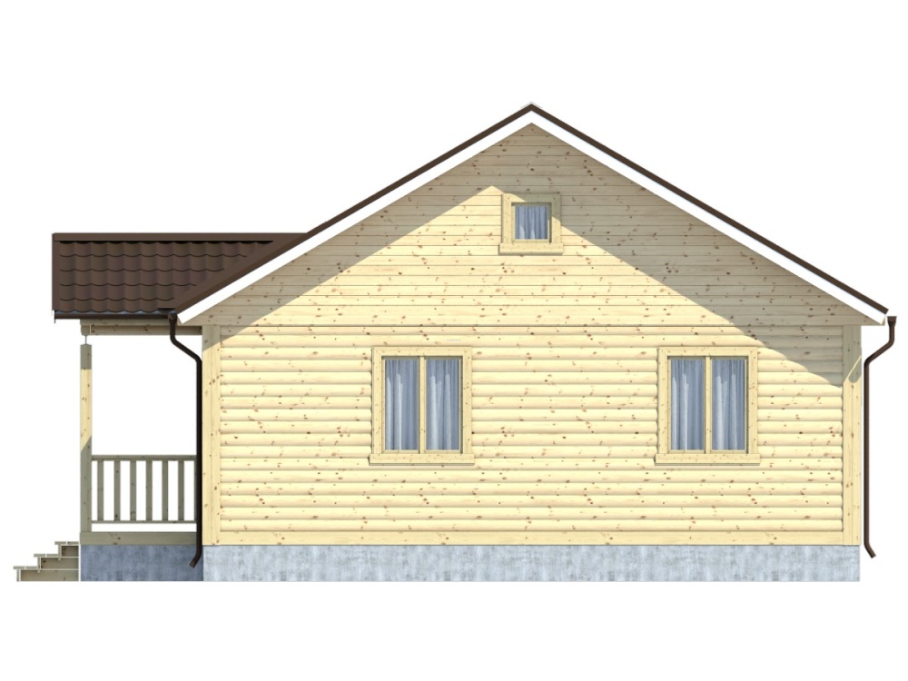 Стены из профилированного бруса с льноджутовой теплоизоляцией между венцами. Здание изготавливается в двух вариантах – из брусьев сечением 90х140 мм и 140х140 мм. Второй вариант с усиленной теплоизоляцией обеспечивает комфорт проживания в зимнее время.